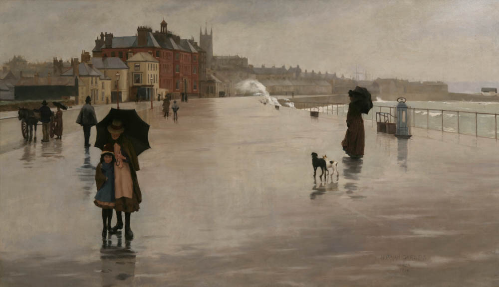 His most famous work is ‘The Rain it Raineth Every Day’, 1889, showing Penzance promenade on a rainy day. The composition of this painting demonstrates Garstin’s admiration for Japanese art, which was influencing so many artists at this time, including Whistler, whose work Garstin also admired. The title is taken from Shakespeare, where it is found both in ‘Twelfth Night’ and ‘King Lear’.