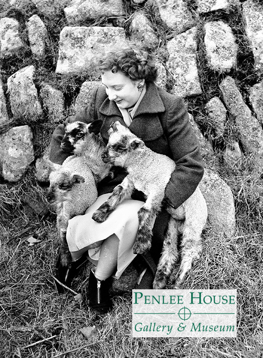 Wendy Tunmore with lamb triplets born on Manor Farm, Pendeen, January 1956. Penhaul likely took this picture as lamb triplets are an unusual occurrence.