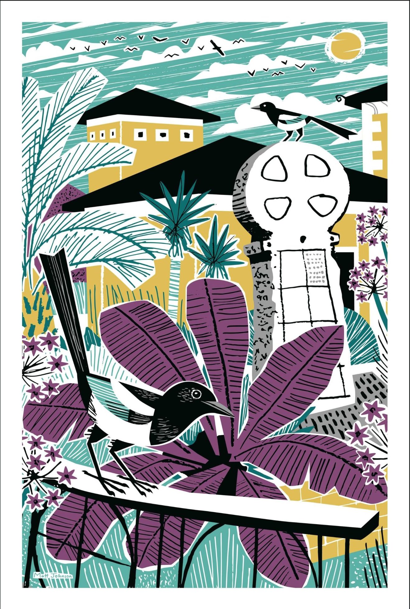 Matt Johnson is a freelance illustrator whose work is rooted in the natural world and the Cornish landscape, themes that shape both his book covers and print designs. He begins each piece by sketching outdoors on location, later developing the final artwork at home using a blend of paint, collage and digital techniques in Adobe Illustrator. His clients include the RSPB, The Woodland Trust, RNLI, Bloomsbury Publishing and many others. His style is also closely linked with Seasalt Cornwall, where he worked as Senior Creative Designer for 18 years, creating hundreds of prints and illustrations across fashion, accessories and homeware.