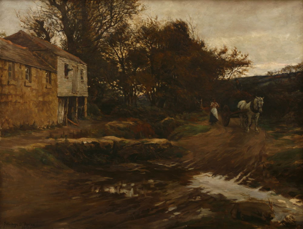 He arrived in Newlyn in 1884 and soon became a leading figure in the growing colony of artists. His national reputation was established with the acceptance of his ‘A Fish Sale on a Cornish Beach’ in 1885 at the Royal Academy, London (now owned by Plymouth City Art Gallery) and the purchase of The Health of the Bride in 1889 by Henry Tate, now at Tate Britain, London.
