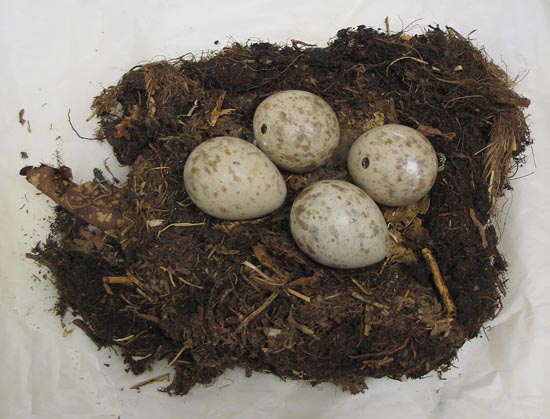 Description: Woodcock nest with 4 eggs. Collected in County Waterford, Ireland on 2 May 1911.