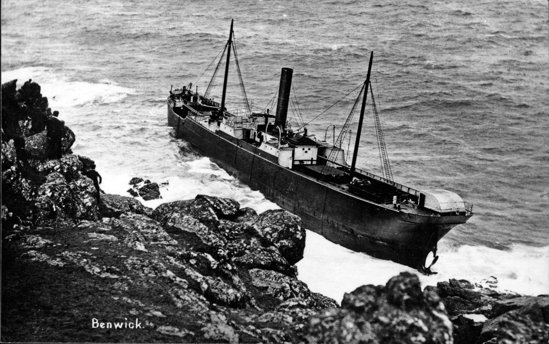 Brief Description: The SS Benwick, 1884 tons of Newcastle, from Antwerp for Barry Dock in ballast struck the Runnelstone at 5am on 13 February, 1903. She was driven before a strong SW wind and drove ashore and was wrecked near Porthcurno.