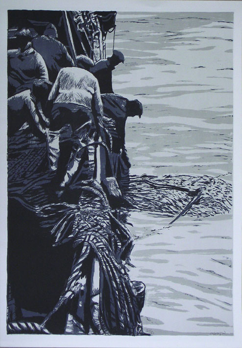 Brief Description: Part of a set of prints called 'The Fisherfolk Prints'. Lithographs taken from pencil drawings, based on period photographs by Harry Jenkins, a Lowestoft photographer.