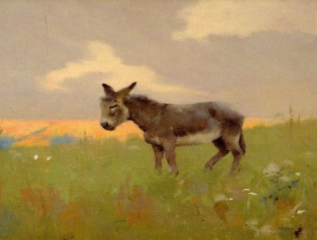 Brief Description: A donkey stood in a field, believed to have been painted in Newlyn.