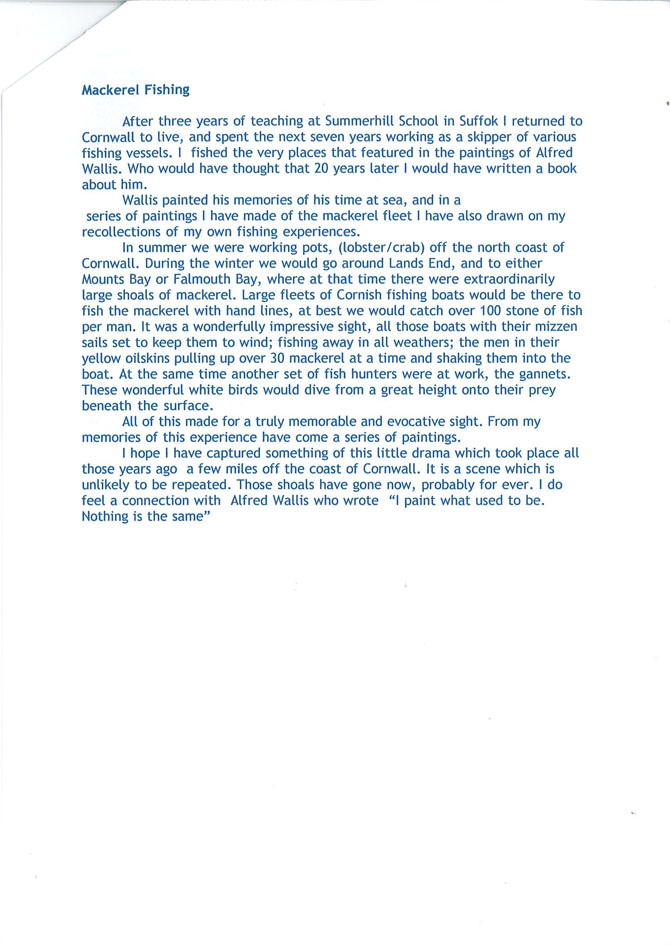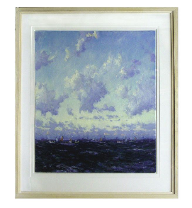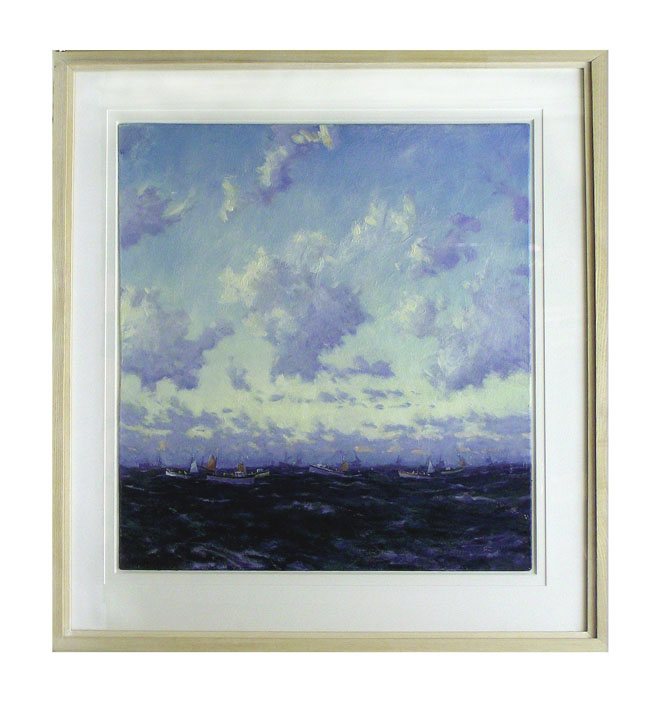 Brief Description: Seascape showing the mackerel fleet at dawn. Robert Jones worked as a skipper of various fishing boats in the 1970s and this painting, one of a series, is based on his personal experiences.