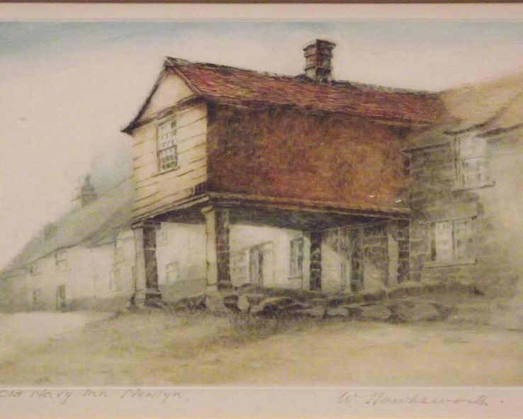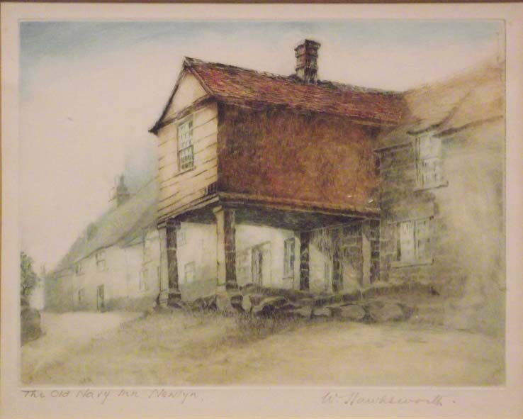 Brief Description: Coloured rendering of the Old Navy Inn, Newlyn and cottage rows.