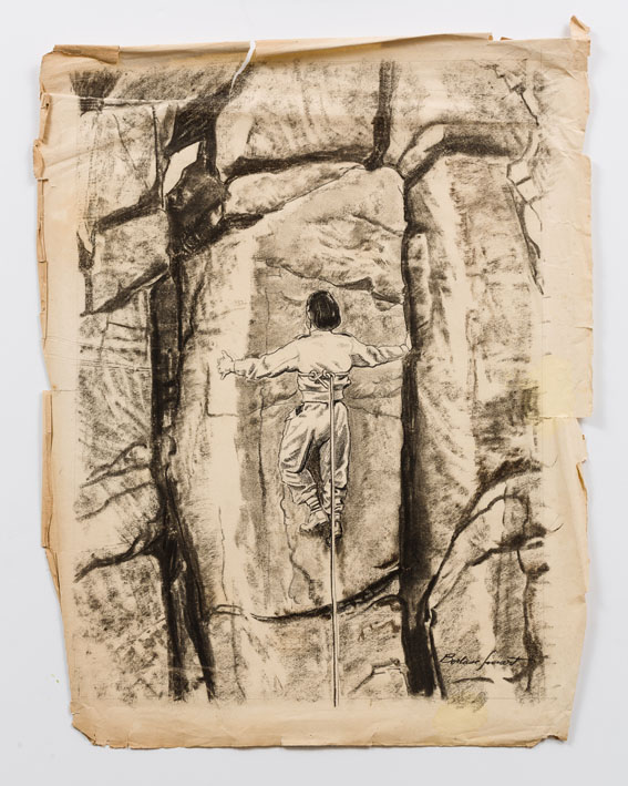 Brief Description: A Royal Marine freestyle rock climbing with rope around his chest.