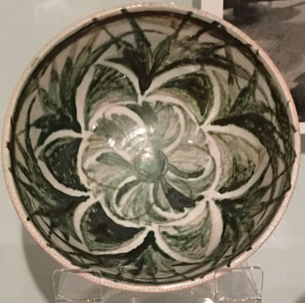 Brief Description: small bowl hand decorated with green floral design