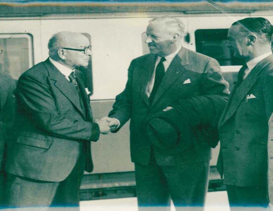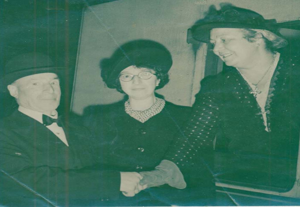 Two people are saying goodbye to a lady departing on a train.