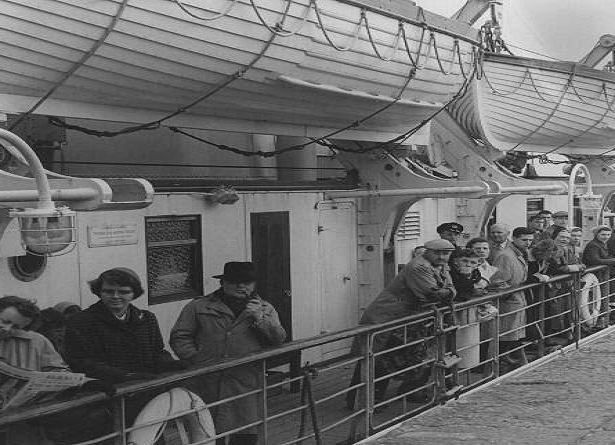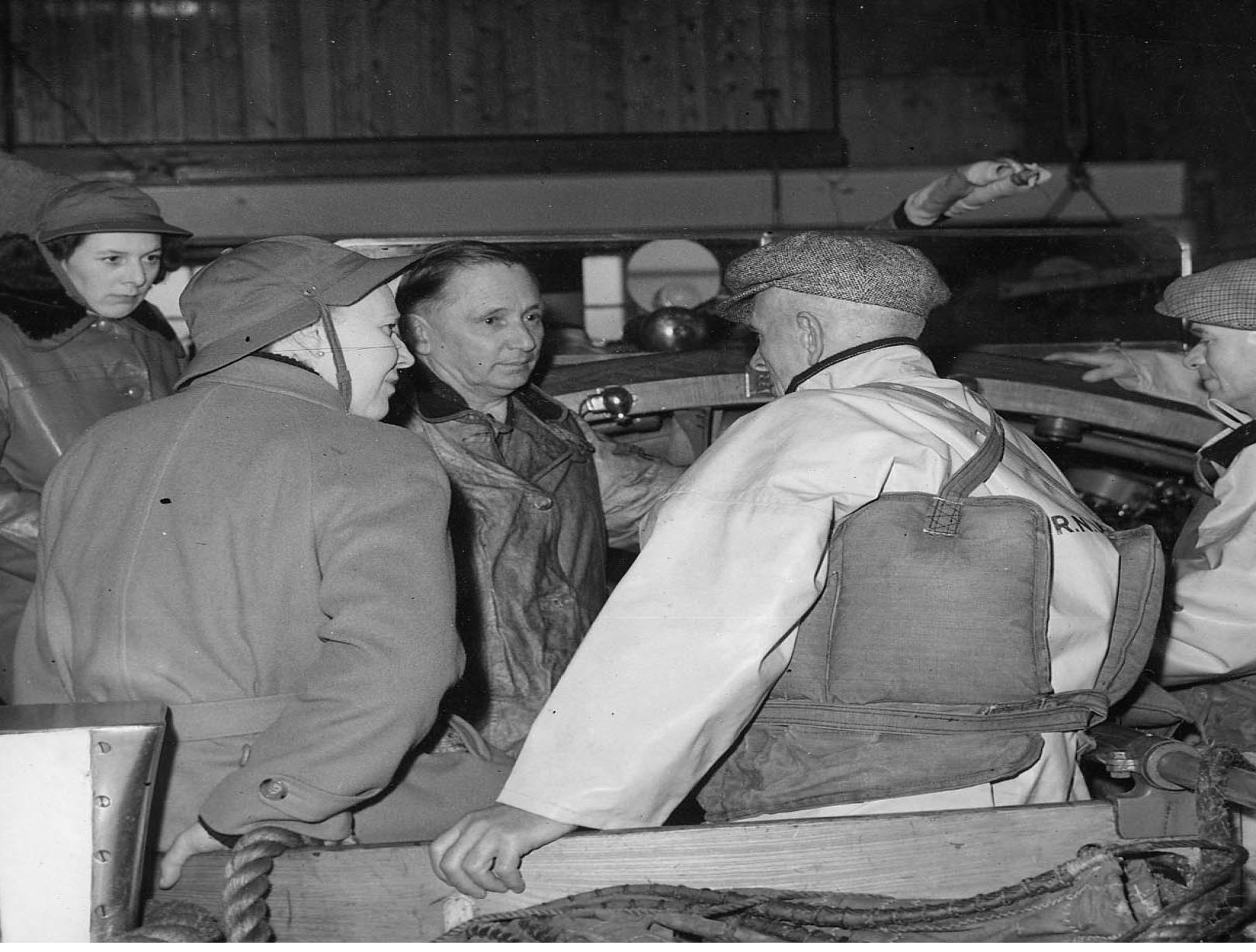 The crew of the W and S lifeboat in boathouse at Penlee.