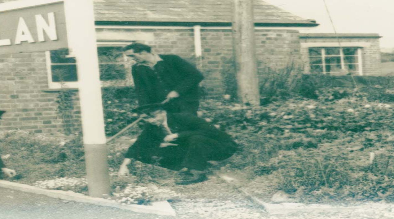 The prize winning railway staff gardeners at Nancegollan Station, Cornwall.
