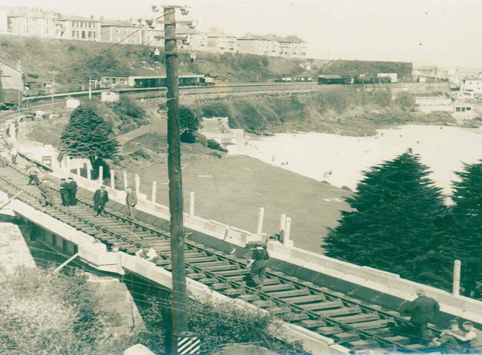 Construction work on the new viaduct outside St Ives Railway Station, c.1950