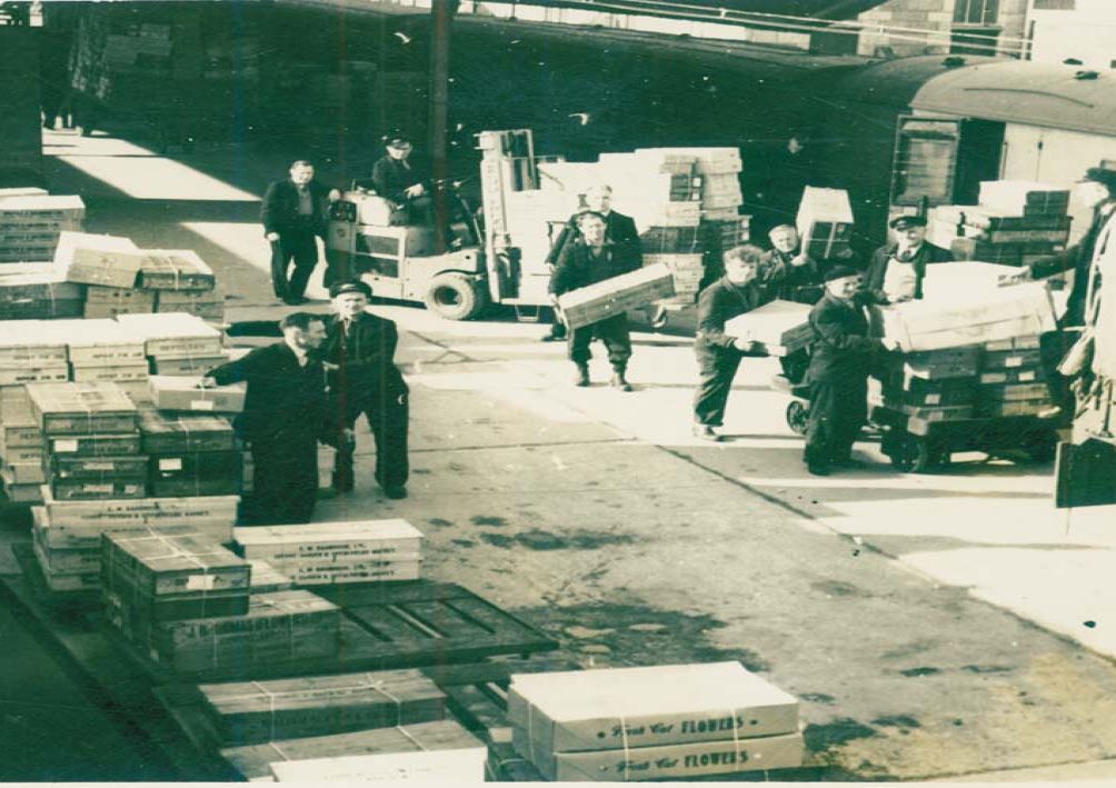 Loading flowers from the Isles of Scilly on Platform 4 Penzance