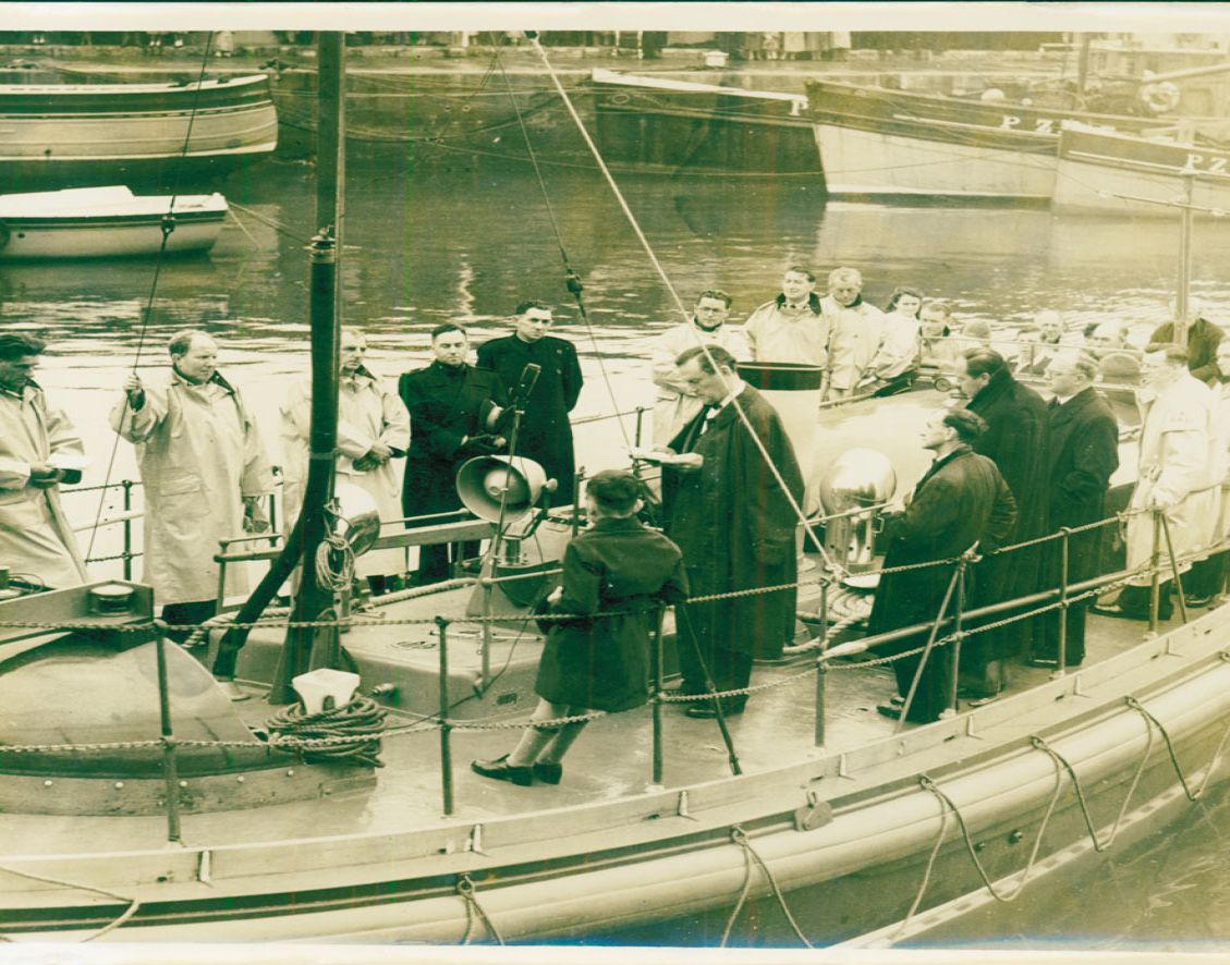 Blessing of the W and S lifeboat in Newlyn Harbour, 1957