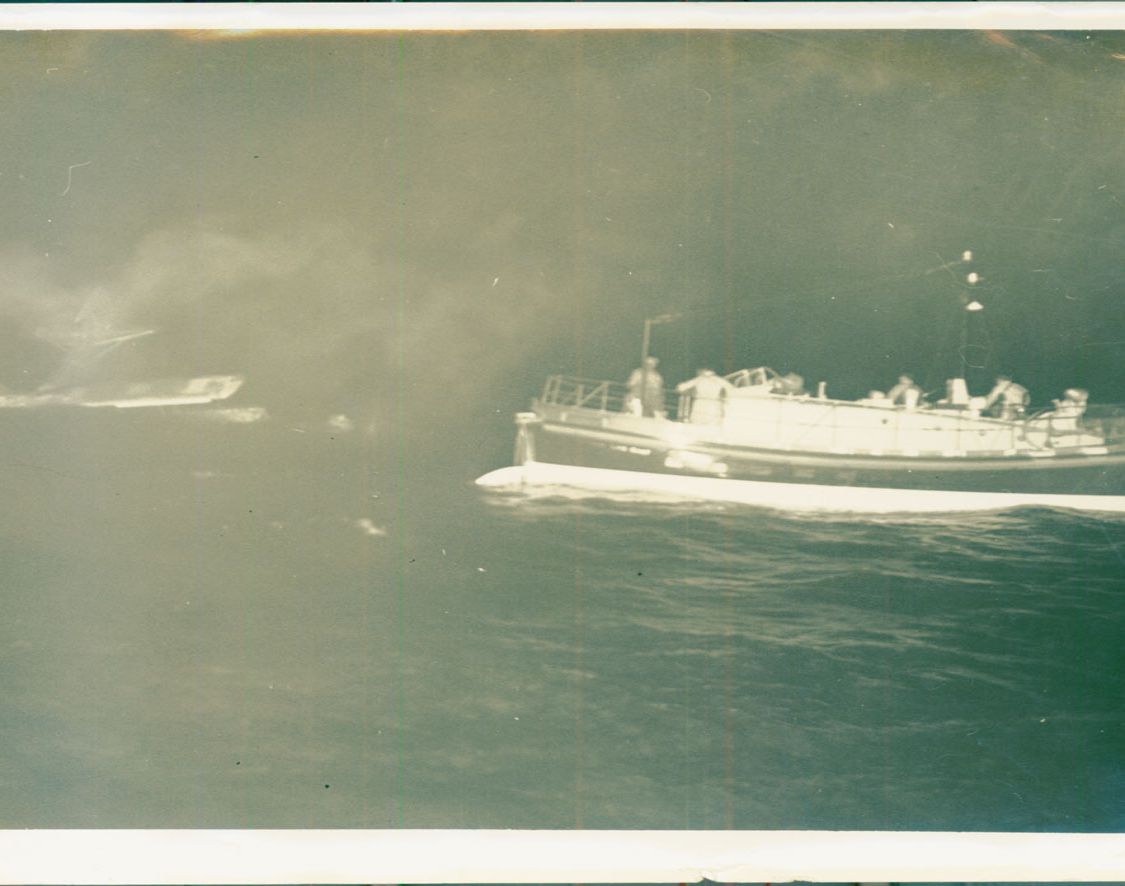 Coverack Lifeboat William Taylor of Oldham standing by the m.v.Citrine of Glasgow, 1956