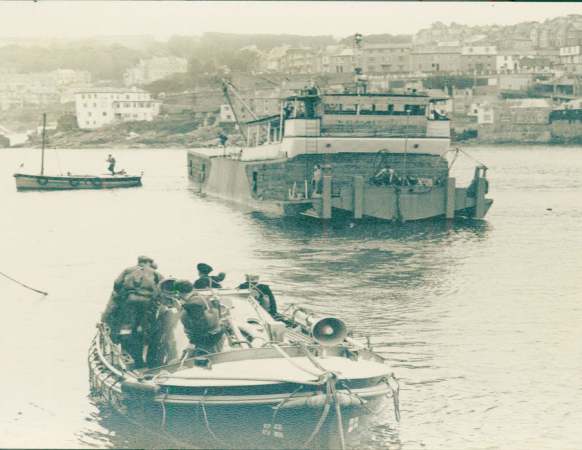 The Amcotts of Port Harcourt is towed into St Ives harbour, 1956.