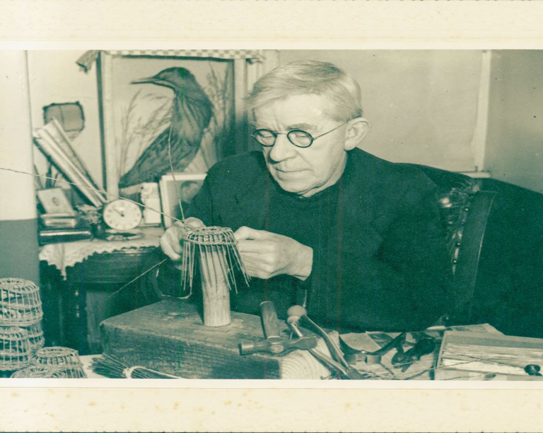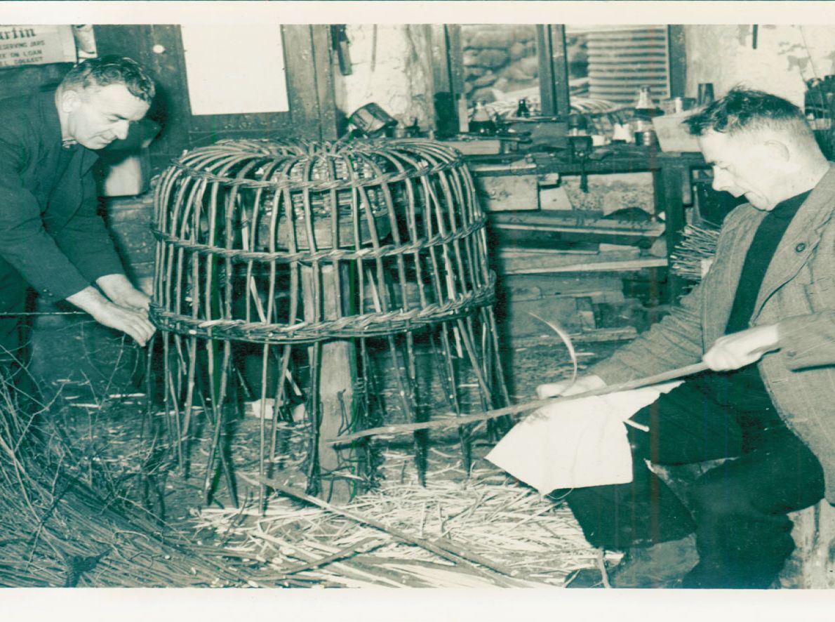Making miniature crab pots for the tourist trade