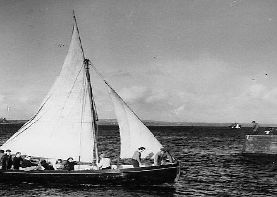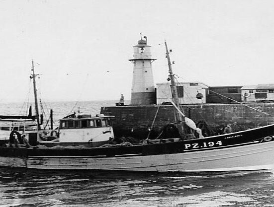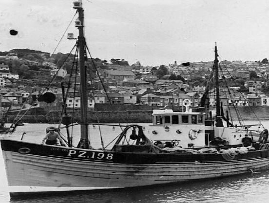 The Trevarth, a Newlyn side trawler sets out from Newlyn Harbour