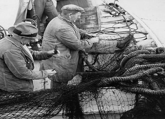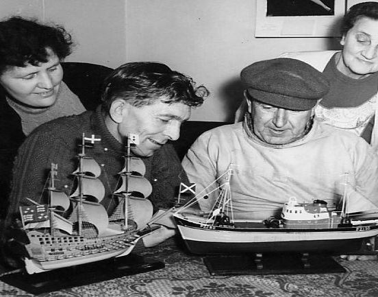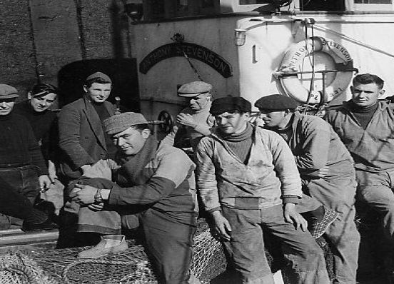 Vic Watling, of the Royal National Mission to Deep Sea Fishermen, talking to the crew of the Anthony Stevenson