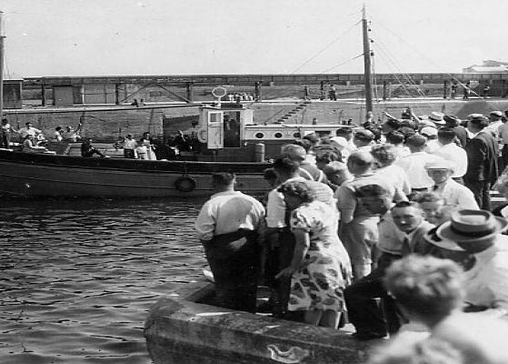 A rainy day in Penzance with passengers on board "Scillonian I" sailing from Extension Pier