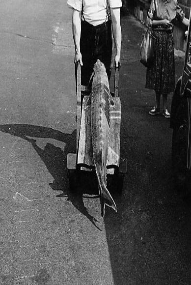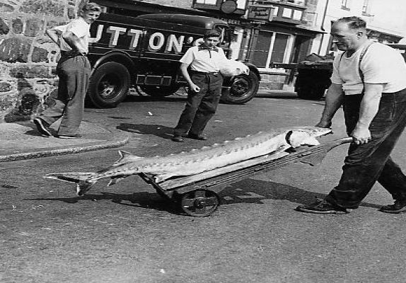 Mr Harry Small in Newlyn with a sturgeon netted by his trawler