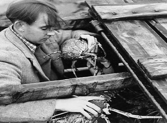 Gerald Harvey taking Crayfish from a storage container