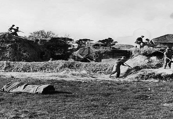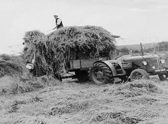 Harvest time, raking up the straw