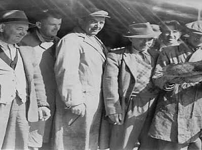 The shipwrecked crew of the Empire Flamingo with the crew of the Sennen Cove Lifeboat