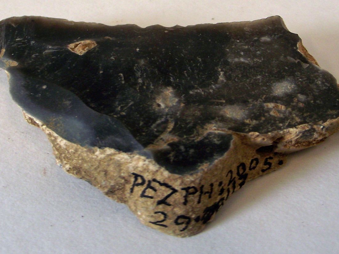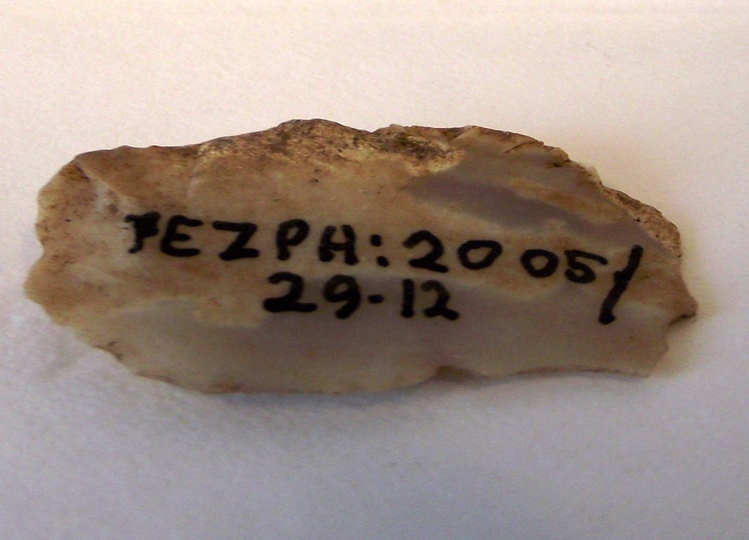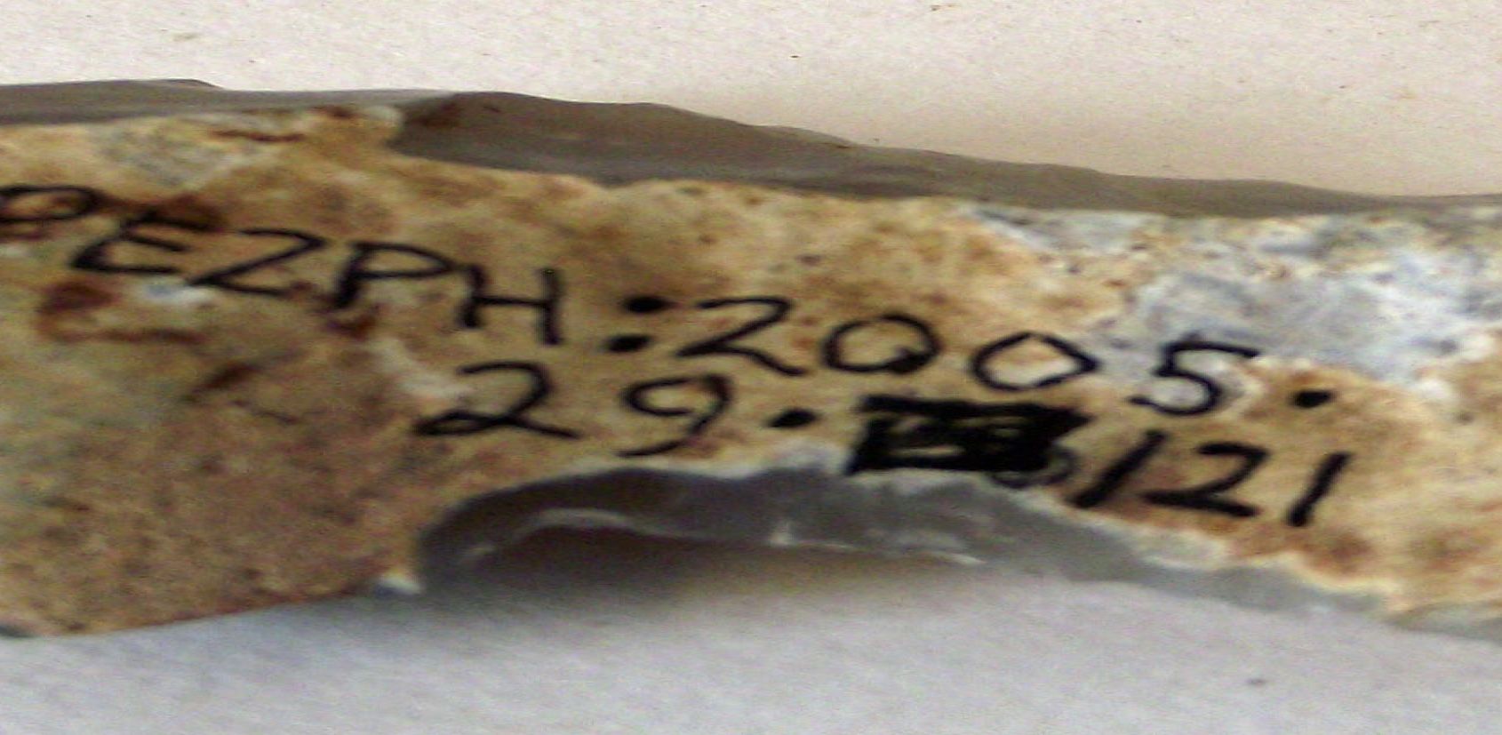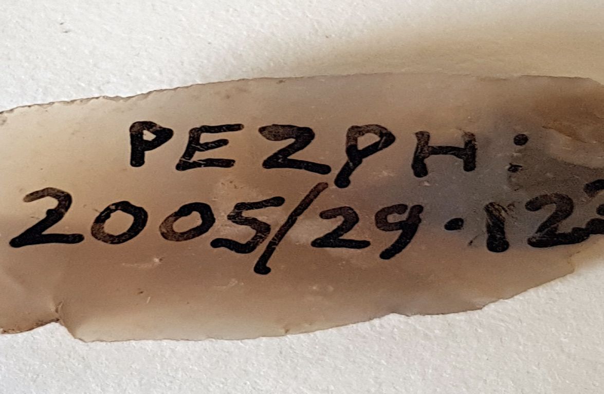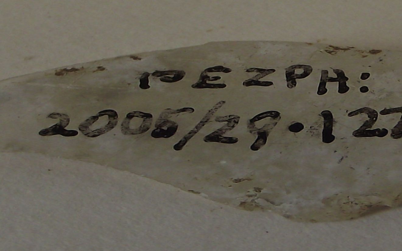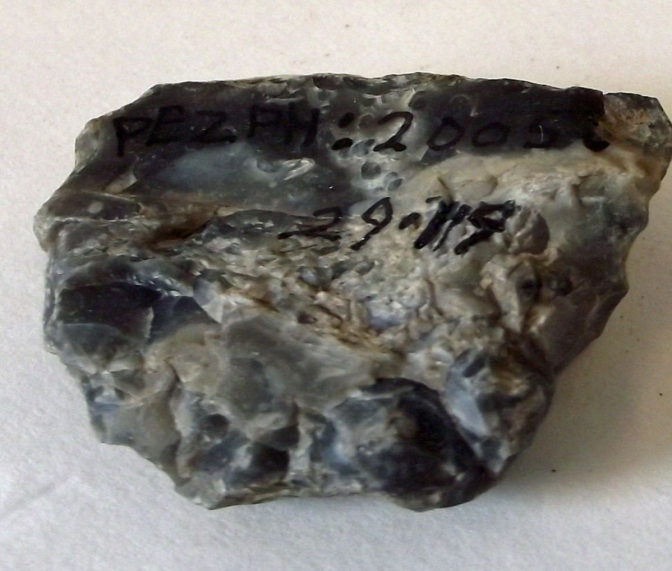 A honey-coloured irregular flint flake with some cortex. The flake is unworked.