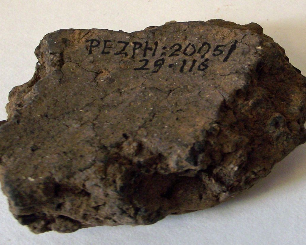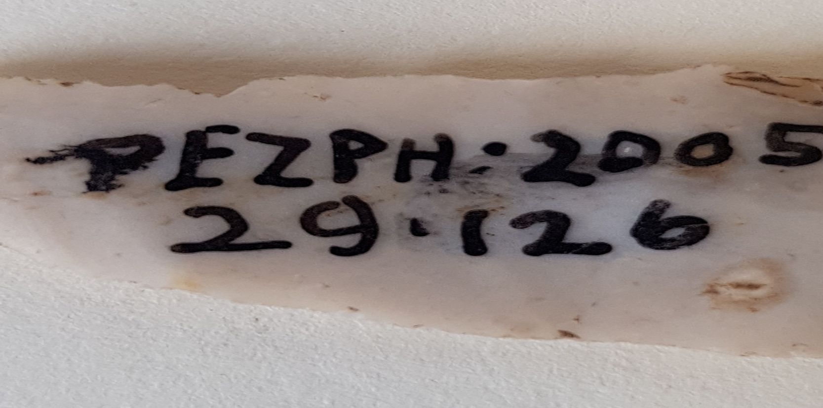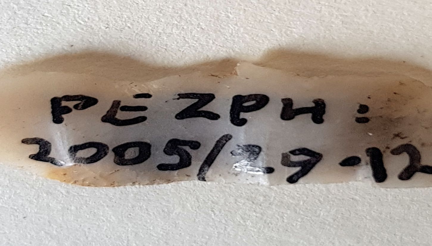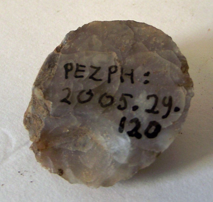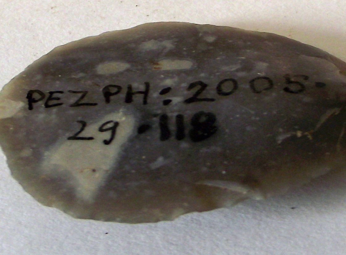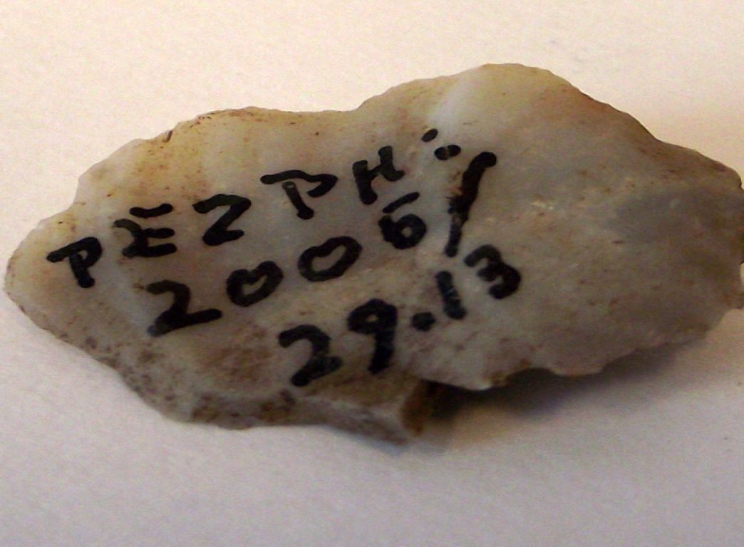A honey-coloured irregular flint flake with some cortex. The flake is unworked.