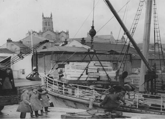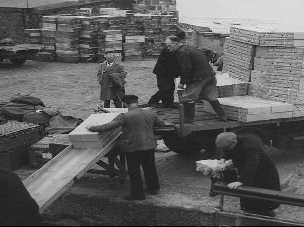 Flowers from the Isles of Scilly being unloaded from the Peninnis, Penzance Harbour