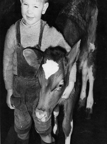 Born and bred - Harry Penhaul's young nephew with an even younger calf