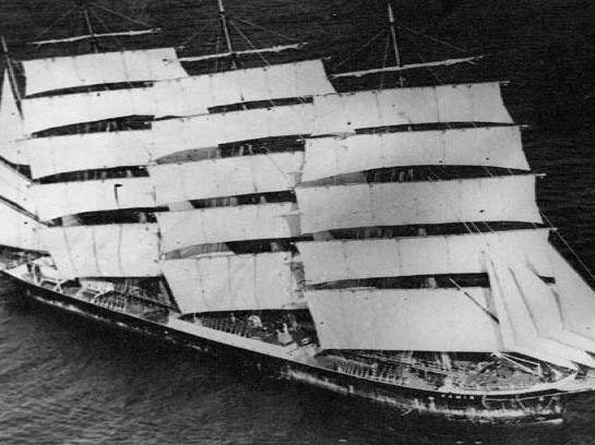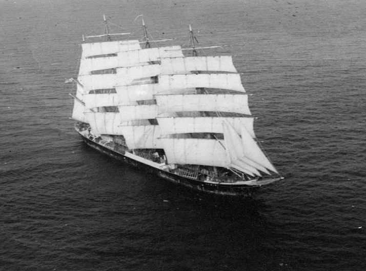 The windjammer "Pamir" rounding the Lizard in June 1949