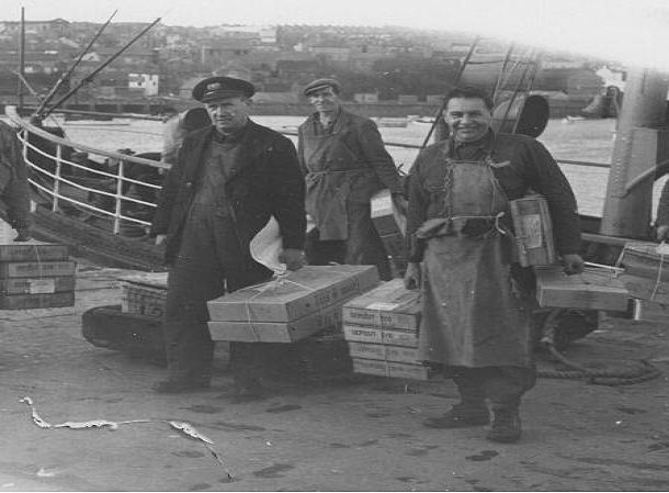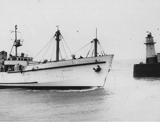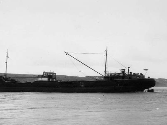 Everard's coaster 'Serenity' laden with cement aground on Hayle Bar in January 1957. She was floated off safely.