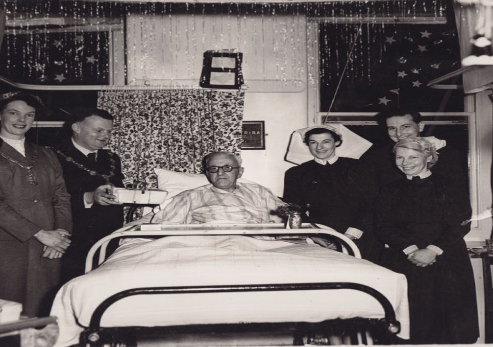The Mayor of Penzance visits the Childrens' Ward at West Cornwall hospital at Christmas 1953