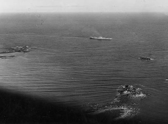 Aerial shot of a ship at sea