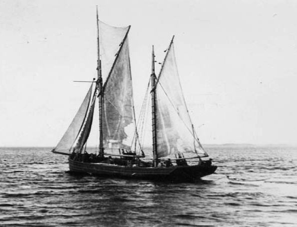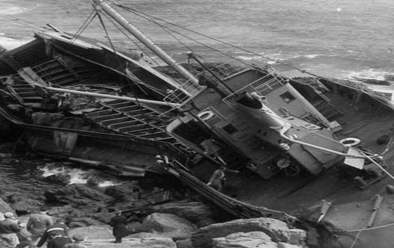 People viewing the wrecked hull of the Traute Sarnow at Gurnard's Head in July 1954