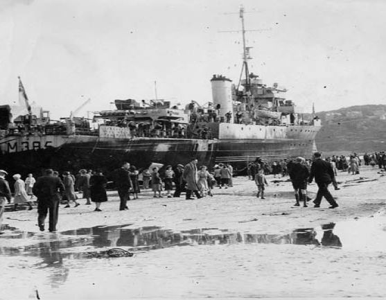Crowds curious to see HMS Wave blown ashore at St Ives on 30 Sepember 1952