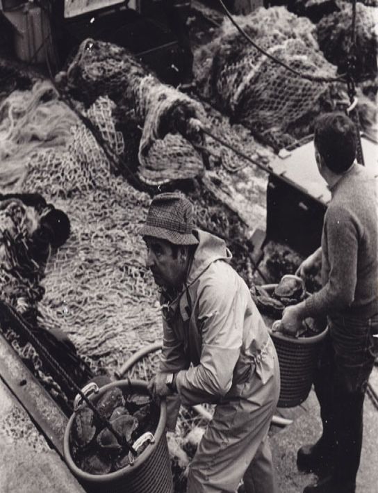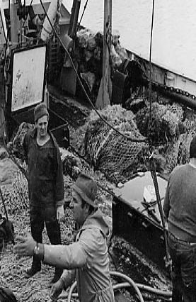 Fishermen on board the trawler Silver Harvester in Newlyn harbour
