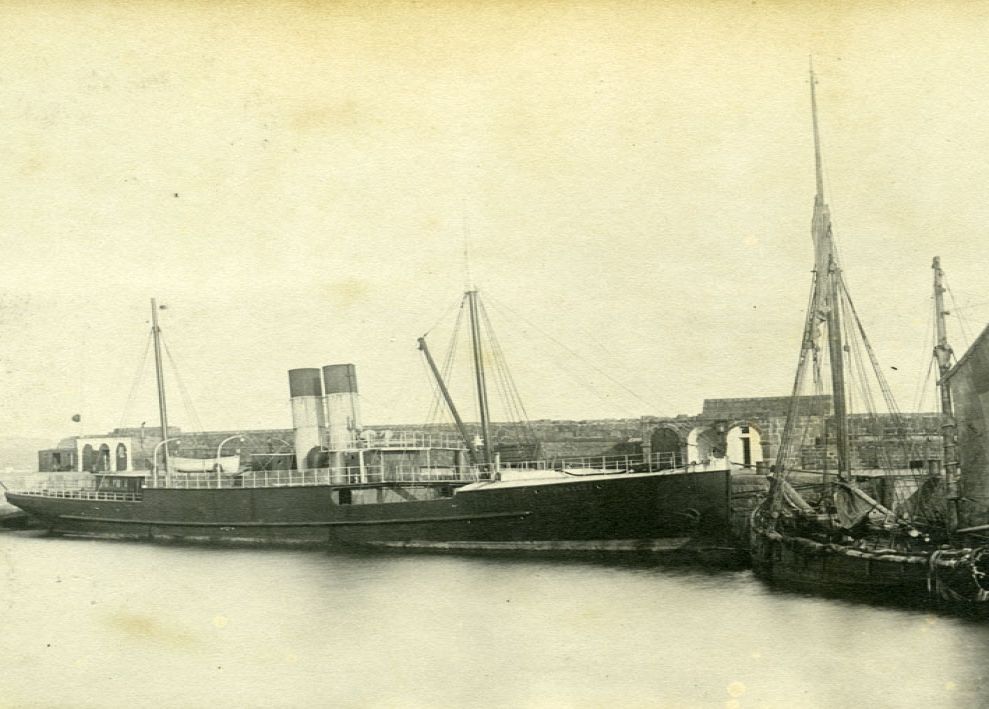 SS Lyonnesse and a Lowestoft sailing smack berthed in Penzance Docks