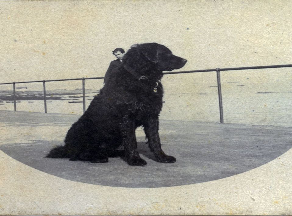 A man, a dog, sunshine and shadow on Penzance Promenade