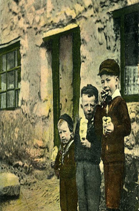 Three Cornish boys enjoy a pasty lunch