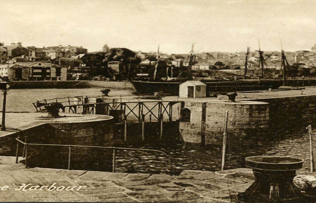 Scandinavian ships with a cargo of timber on the quay at Penzance