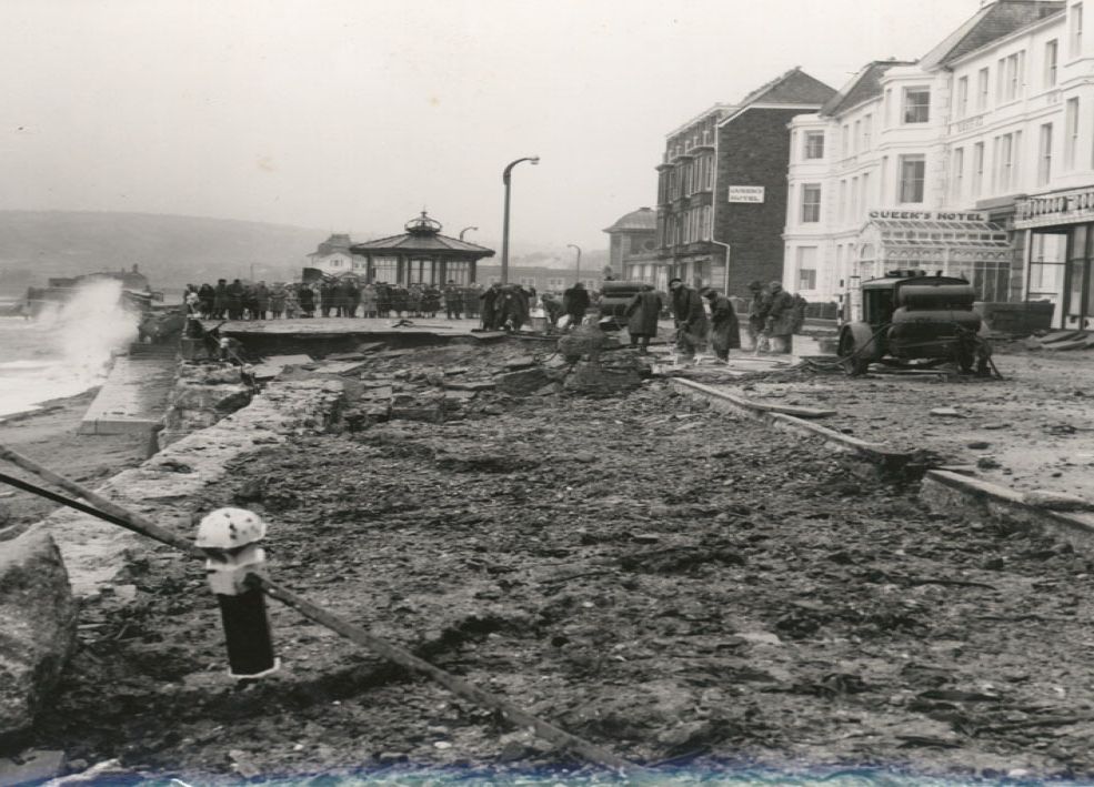 Daylight reveals the destruction wreaked on Penzance Promenade by the Ash Wednesday storm