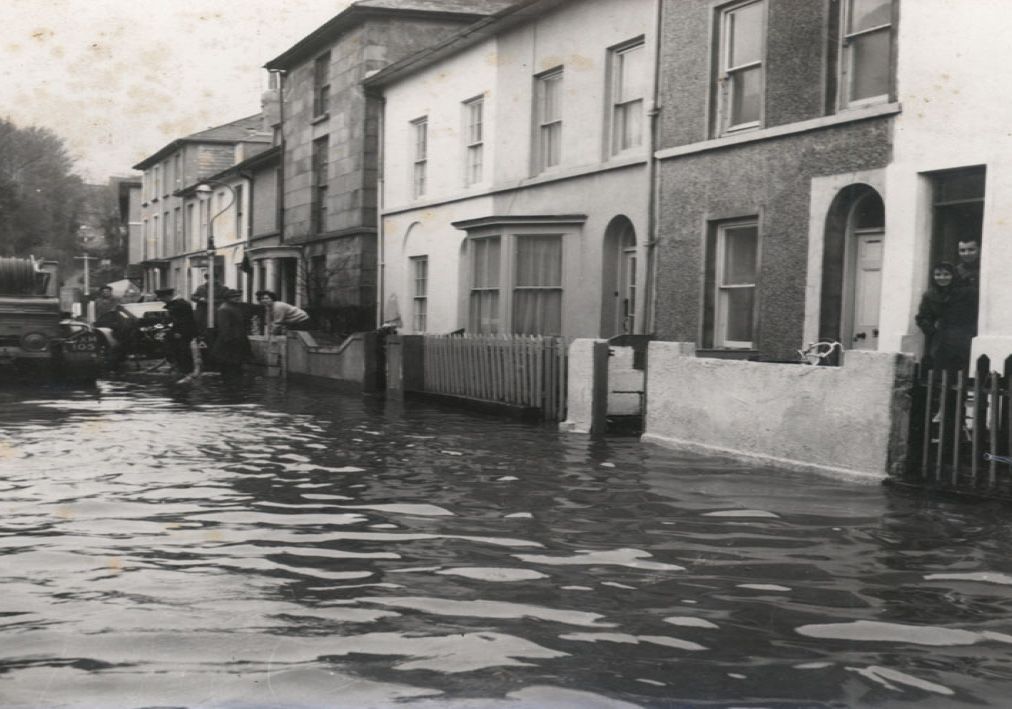 An attempt to clear up the flood water in Cornwall Terrace after the Ash Wednesday storm