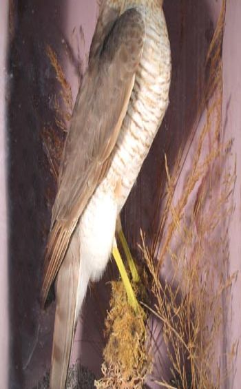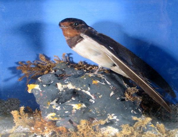 Swallow in a case, mounted by W H Eva of Penzance.