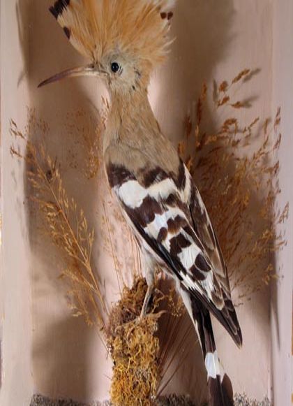 Hoopoe in a case, mounted by W H Vingoe of Penzance.