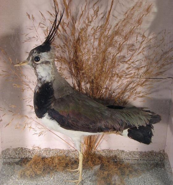 Lapwing in a case, mounted by E Vingoe of Penzance.