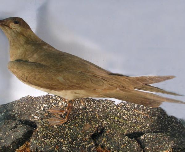 Arctic skua in a case, mounted by W H Rowe.