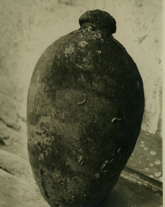 This Roman urn was trawled up off the Longships on 2 April 1931. This kind of amphora was used for wine or olive oil, the pointed foot enabling it to stand on soft ground.